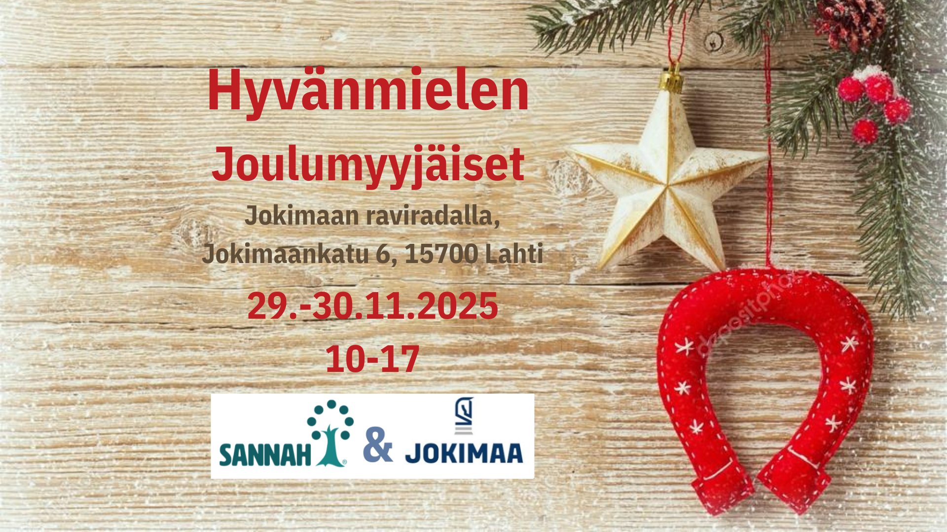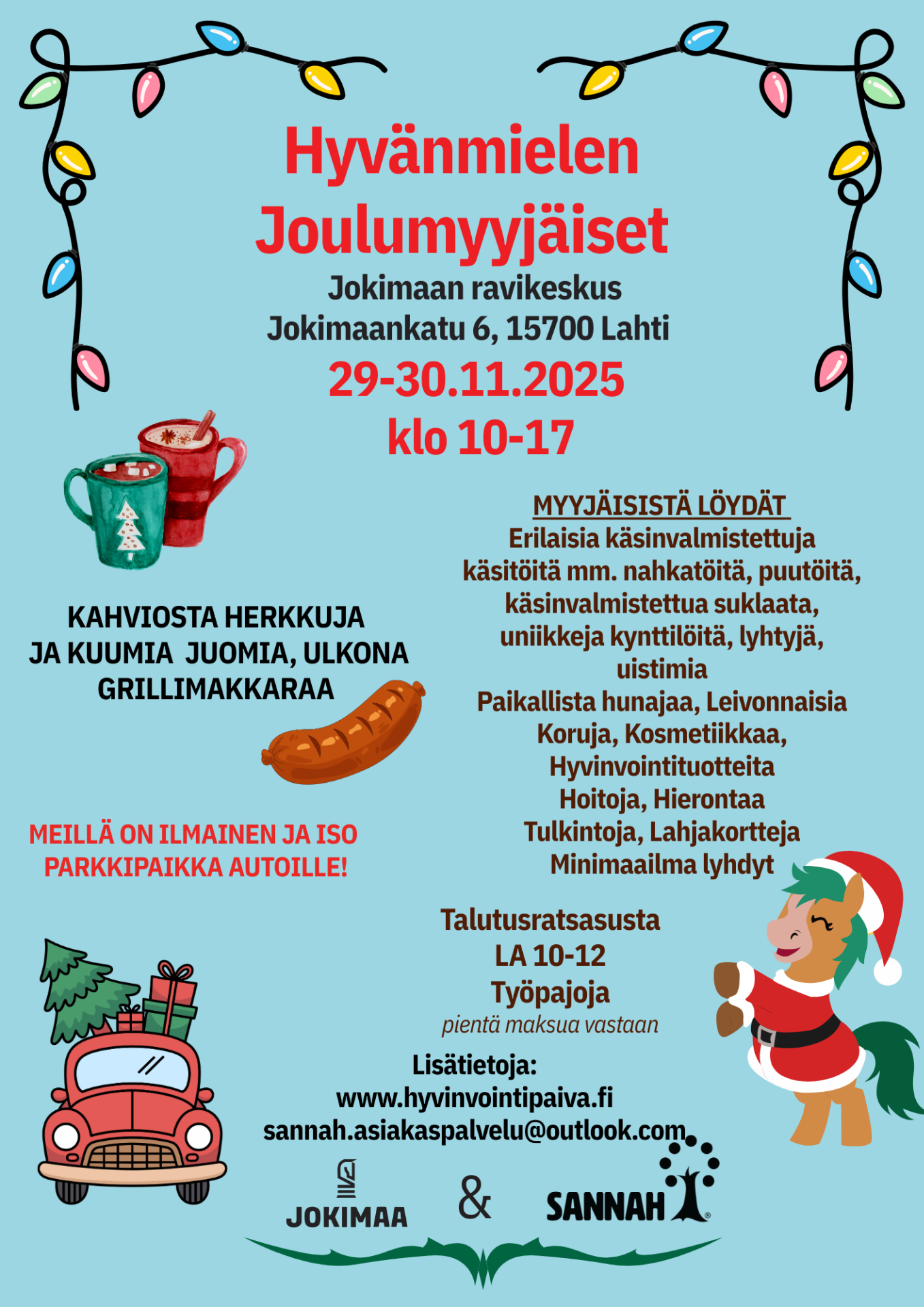Tervetuloa Hyvänmielen Joulumyyjäiset 29-30.11 klo 10-17