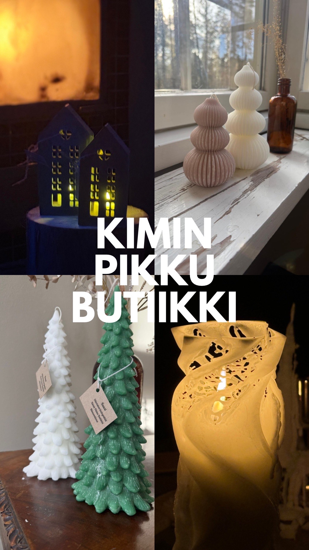 Mukana Kimin Pikku Butiikki; valmistaa kynttilöitä ekologisista luonnonvahoista. Kynttilät valetaan omassa pienessä pajassa ja ne eivät savuta tai nokea. Kimin Pikku Butiikin löydät instagramista.