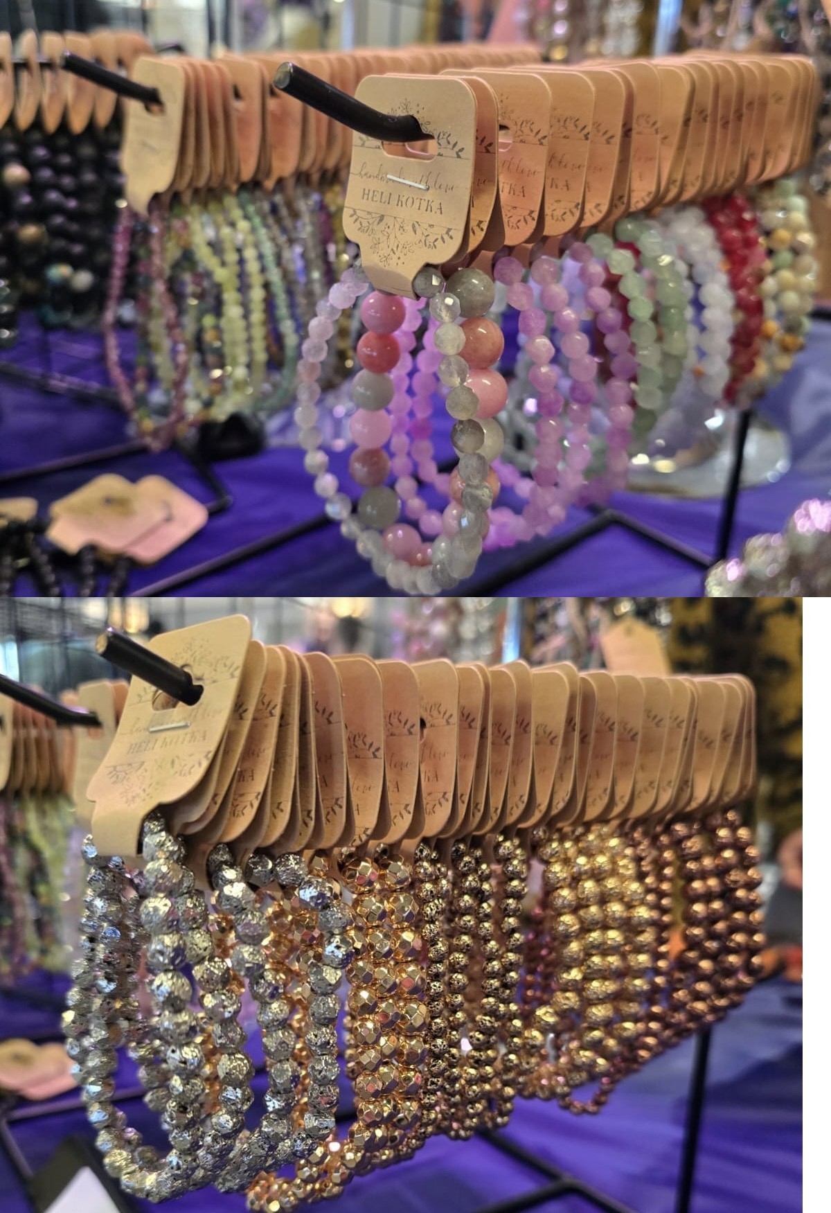 Käsintehtyjä koruja; Materiaaleina luonnonkivet sekä epoksihartsi. By Heli Kotka