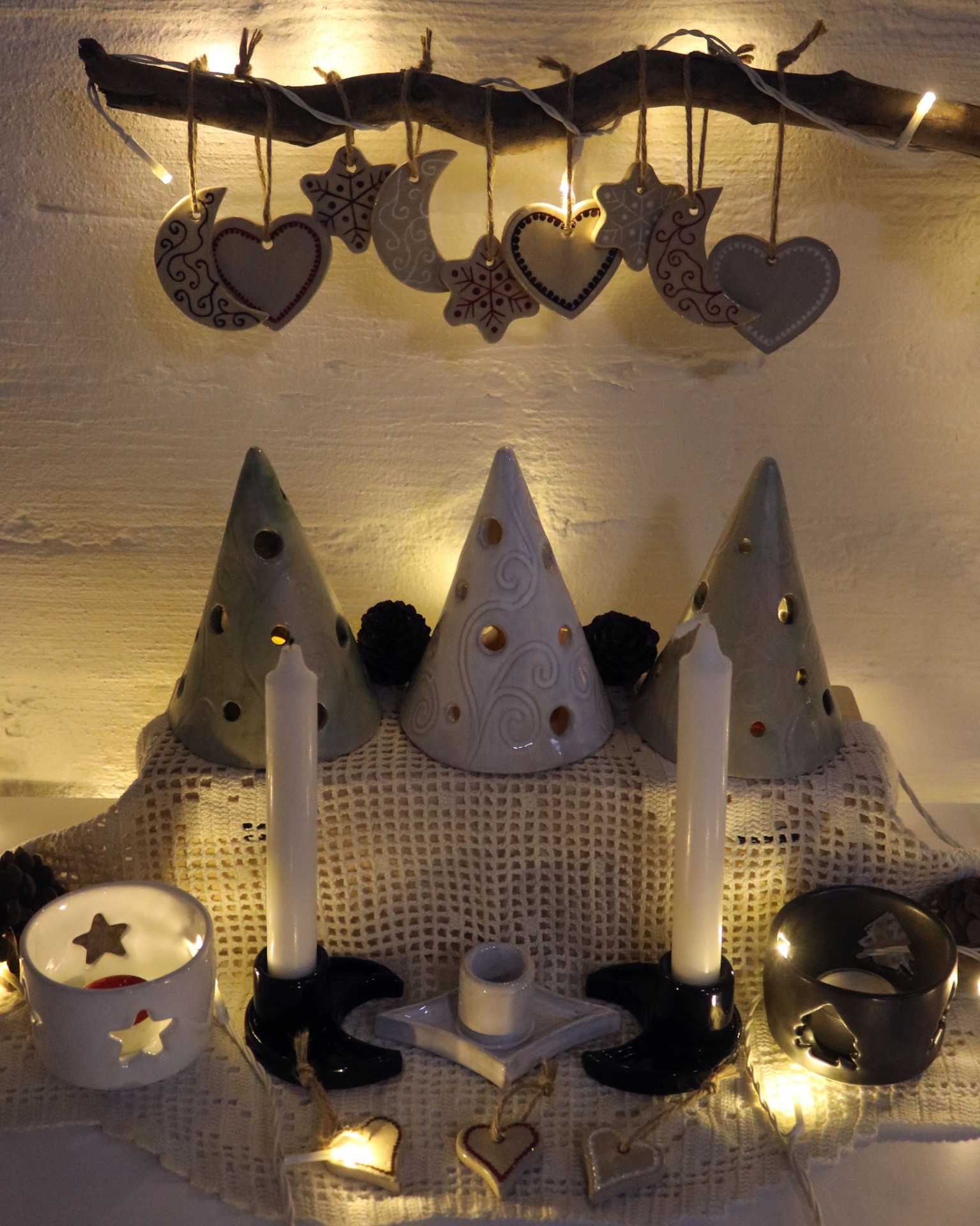 Tiina Penttilällä pöydässä joululeivonnaisia, kynttilöitä, pipareita, askarteluja