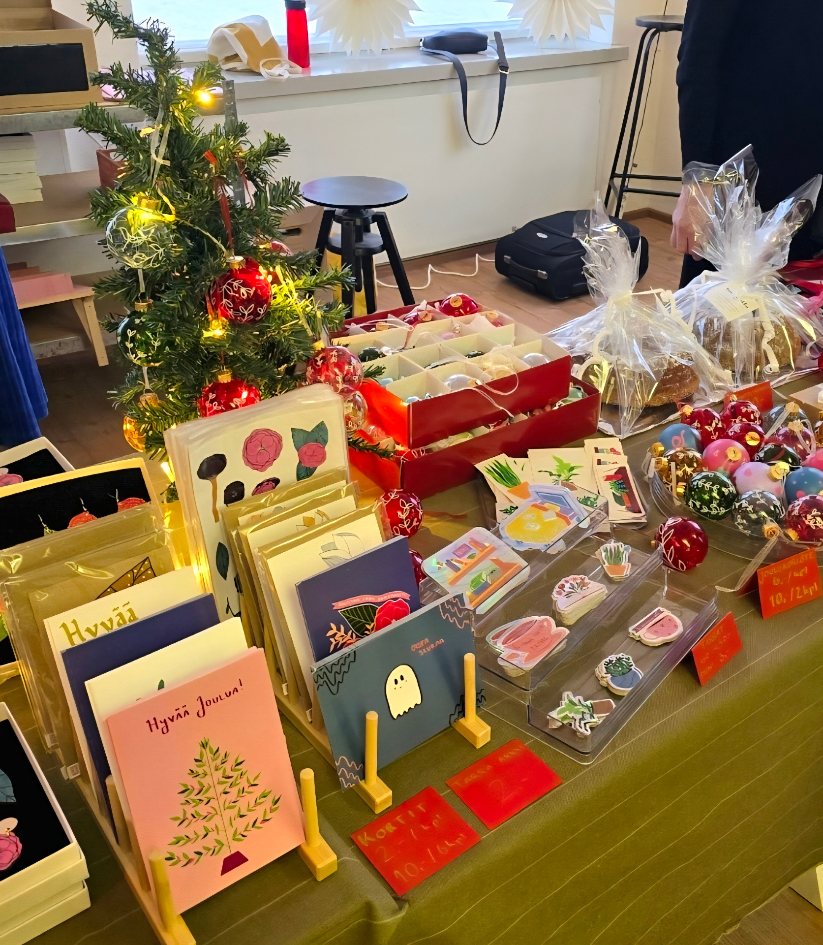 Hyvänmielen Joulumyyjäisissä mukana NEAN - Käsin maalattuja joulukoristeita sekä koruja, kortteja ja tarroja.