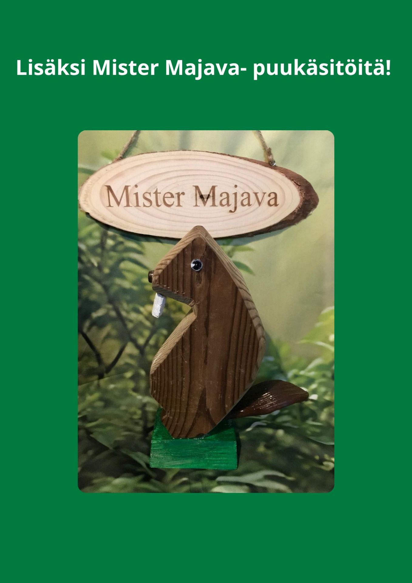 Mister Majavan puukäsitöitä löydät samasta pöydästä Soluni tuotteiden kanssa