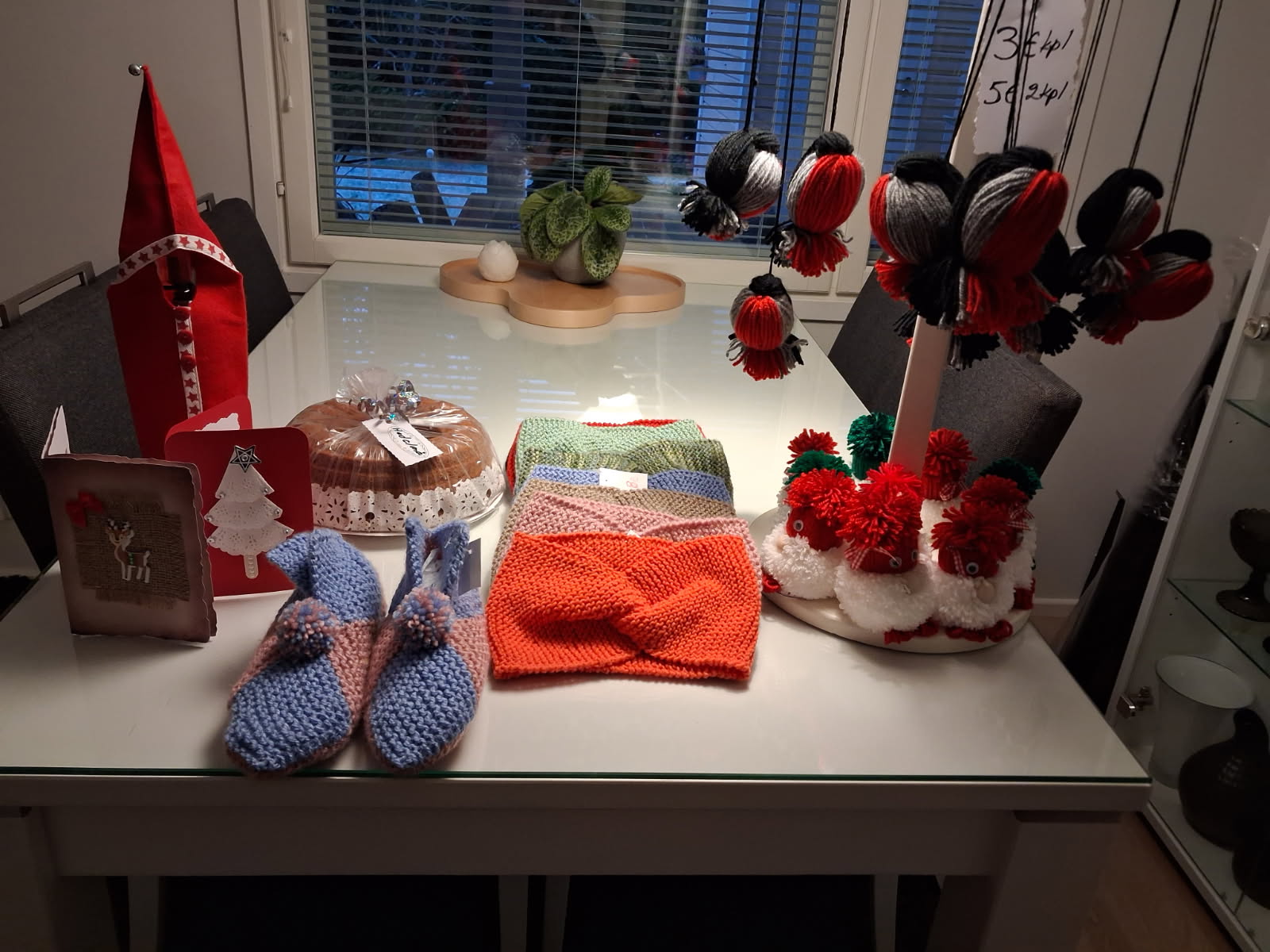 Riitta Saviomalla mukana Hyvän Mielen Joulumyyjäisissä, ihania sukkia, keppareita ja led valoja.