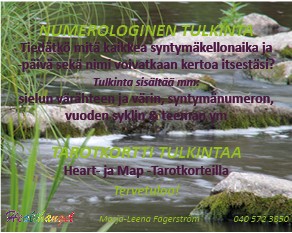 Hei, olen Annina Kyrklund, Valon Sydän ry:n perustaja. Olen toiminut henkisenä opastajana yli 25 vuotta ja erikoistunut siihen, miten voimme löytää ja purkaa elämäämme rajoittavia alitajuisia kielteisiä ajatusmalleja ja siten luoda itsellemme paremman elämän. Apukeinoja siihen ovat selvänäköiset numerologia- ja tarot-konsultaatiot, energiahoidot ja kurssit. Gladys Lobos on toisena maailmassa myöntänyt minulle numerologian opettajan diplomin. Lisätietoa [www.valonsydan.fi](https://www.valonsydan.fi/)