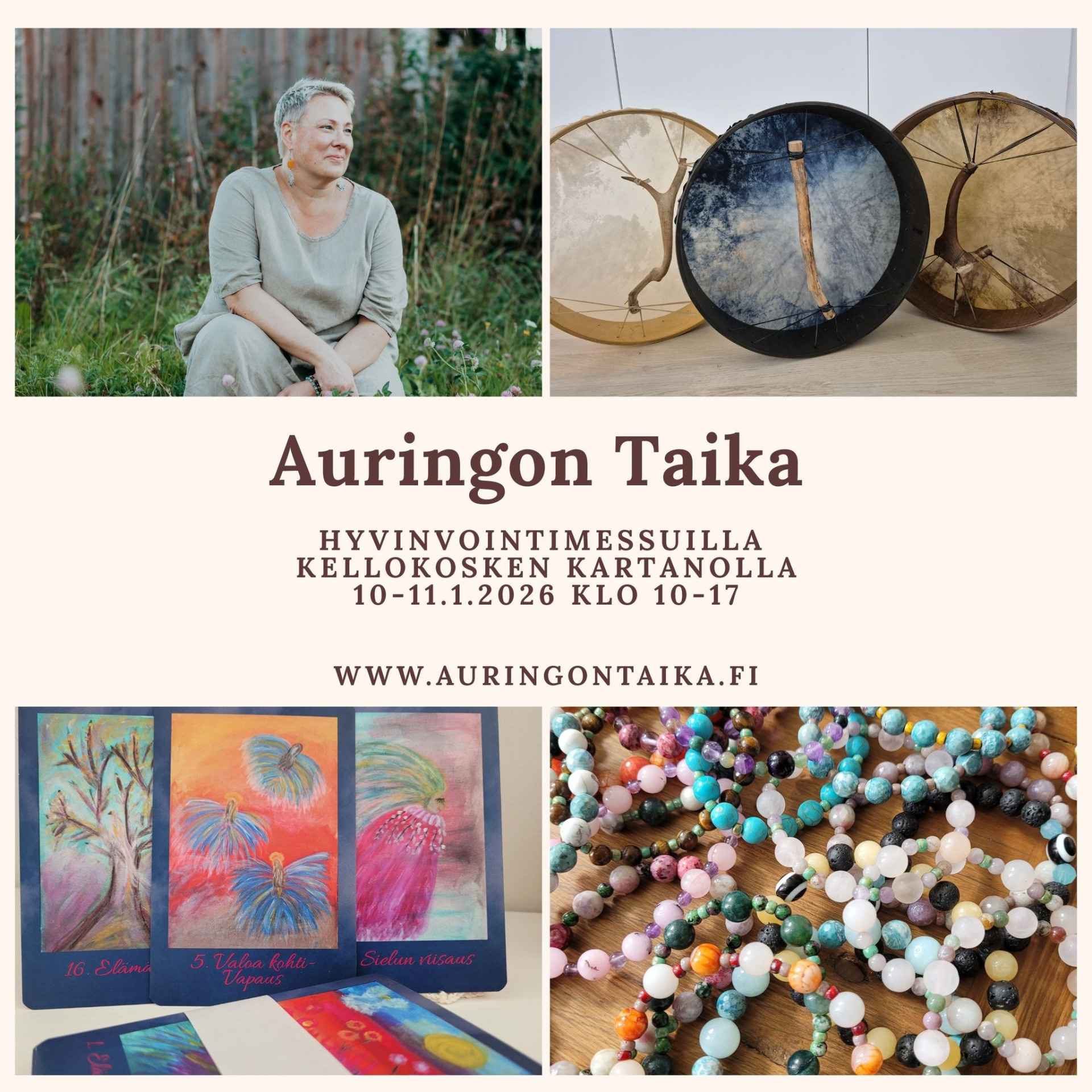 Jonna Pajari, AuringonTaika, käsin tehdyt rummut, korttipakat omaa tuotantoa, tulkinnat ja rumpuhoidot