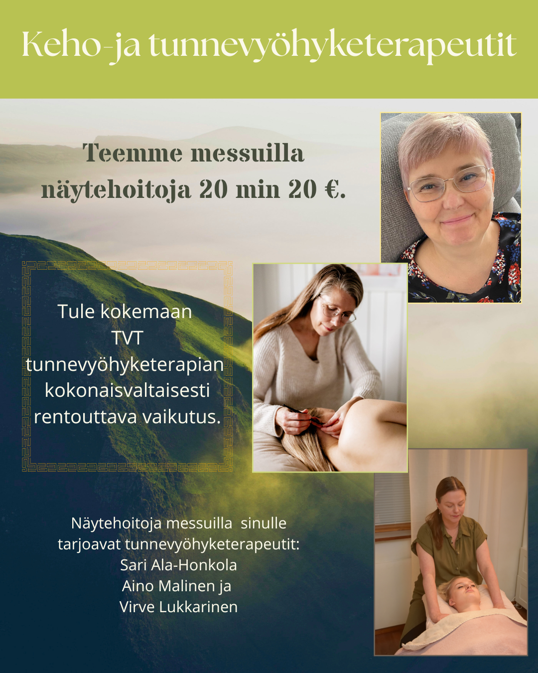 Hyvinvointimessuilla mukana Tunnevyöheketerapia Virve Lukkarinen, Kehoterapia Wirelax, Aino Malinen, Kehoterapia Aino ja Sari Ala-Honkola, Uskalla