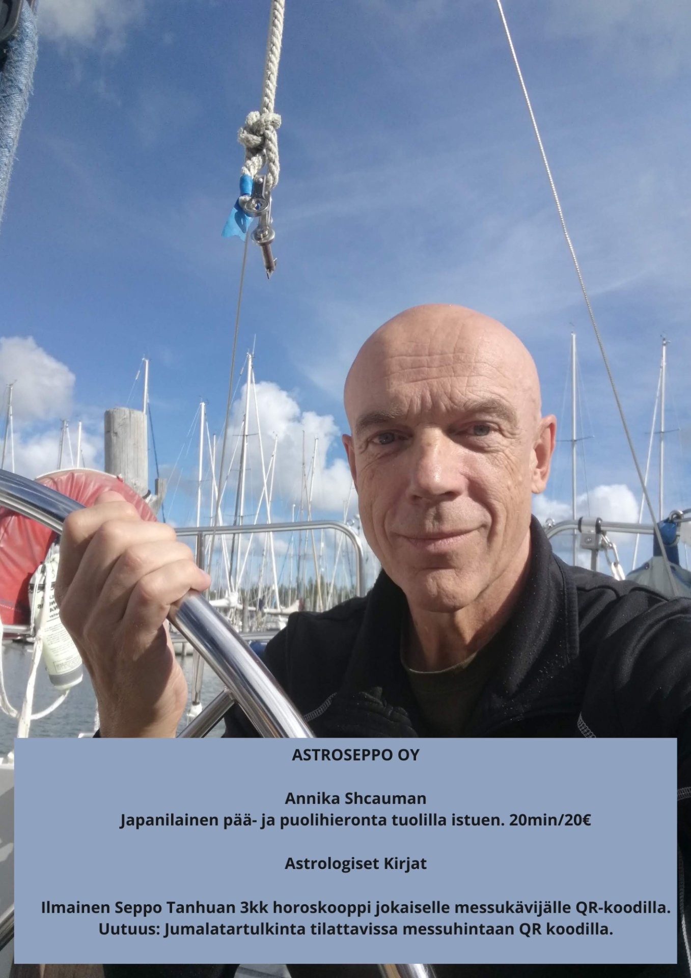 Ilmainen Seppo Tanhuan 3kk horoskooppi jokaiselle messukävijälle QR-koodilla.