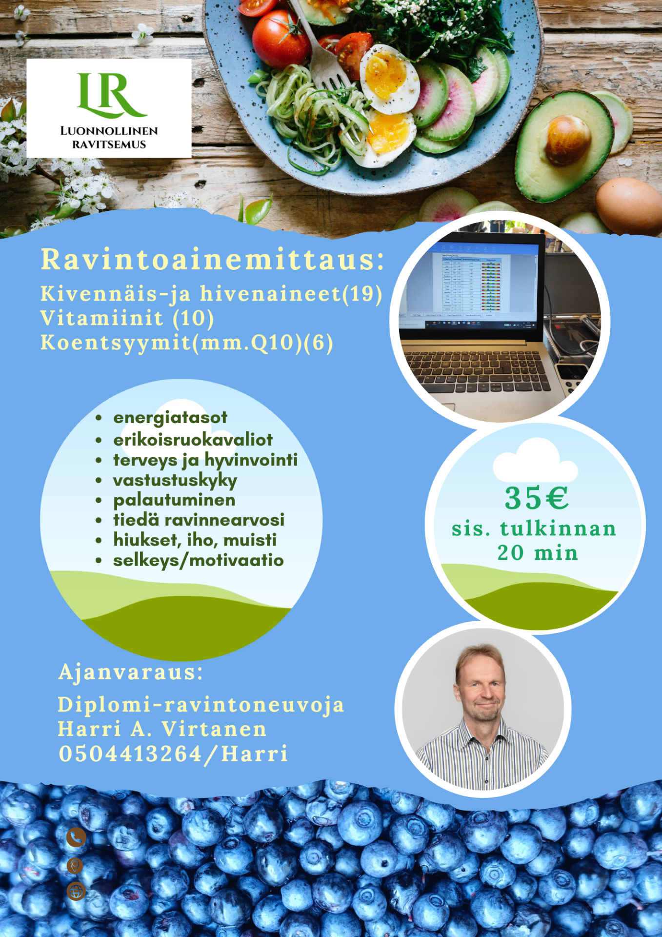 Harri A. Virtanen, diplomi-ravintoneuvoja, ravintoainemittauksia