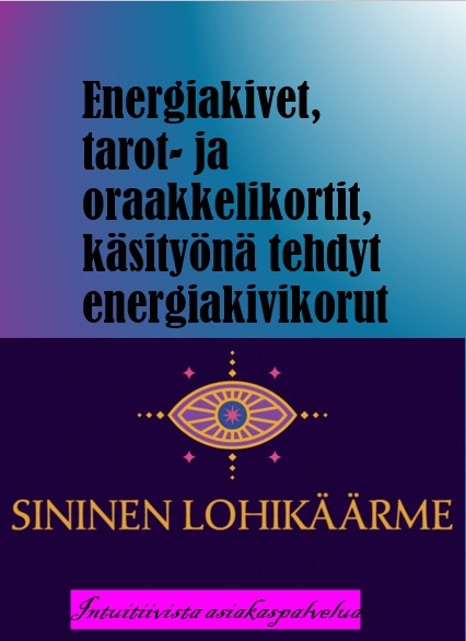 Sininen Lohikäärme mukana Hyvinvointimessujen valovoimaisessa tunnelmassa. Olet sydämellisesti tervetullut tutustumaan Sinisen Lohikäärmeen tuotteisiin.Energiakiviä, tarot- ja oraakkelikortteja sekä käsityönä tehdyt energiakivikorut. Halutessasi intuitiivista asiakaspalvelua, myös oraakkelikortin nosto. Voin kertoa myös eri energiakivien vaikutukset mm. chakroihin. Johanna H, Sininen Lohikäärme Tutustu palveluihini ja tuotteisiini osoitteessa: https://www.facebook.com/profile.php?id=100064378080885