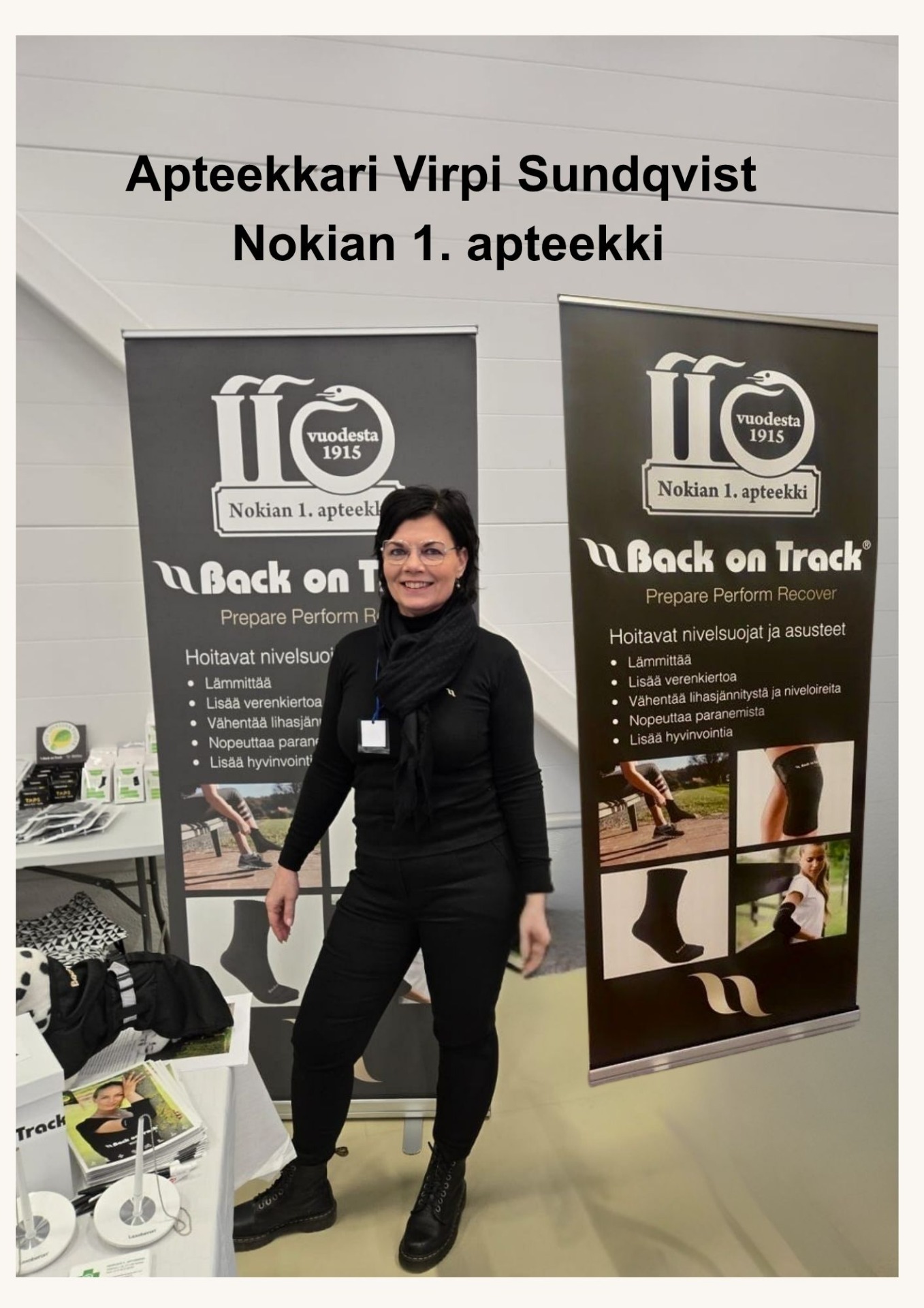 Nokian 1. apteekki mukana messuilla. Esittelemme Back on Track- hoitavat nivelsuojat ja asusteet.