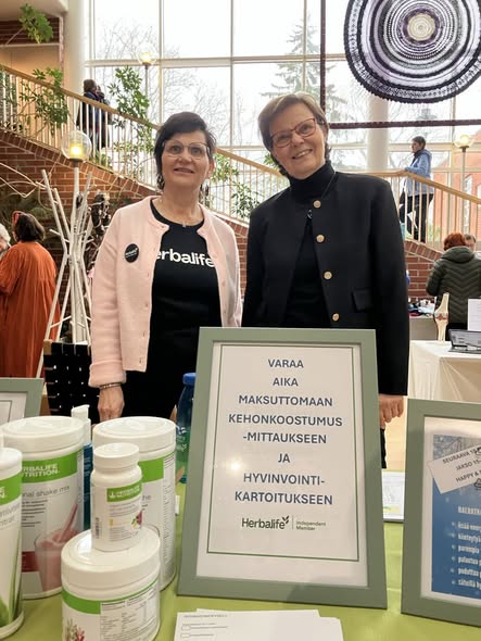 Hyvinvointipäivässä mukana hyvinvointiohjaajat ja Herbalifejäsenet Leena Hyvinvointiohjaaja Leena Juhala ja Taina Hyvinvointiohjaaja Taina Lyyra.