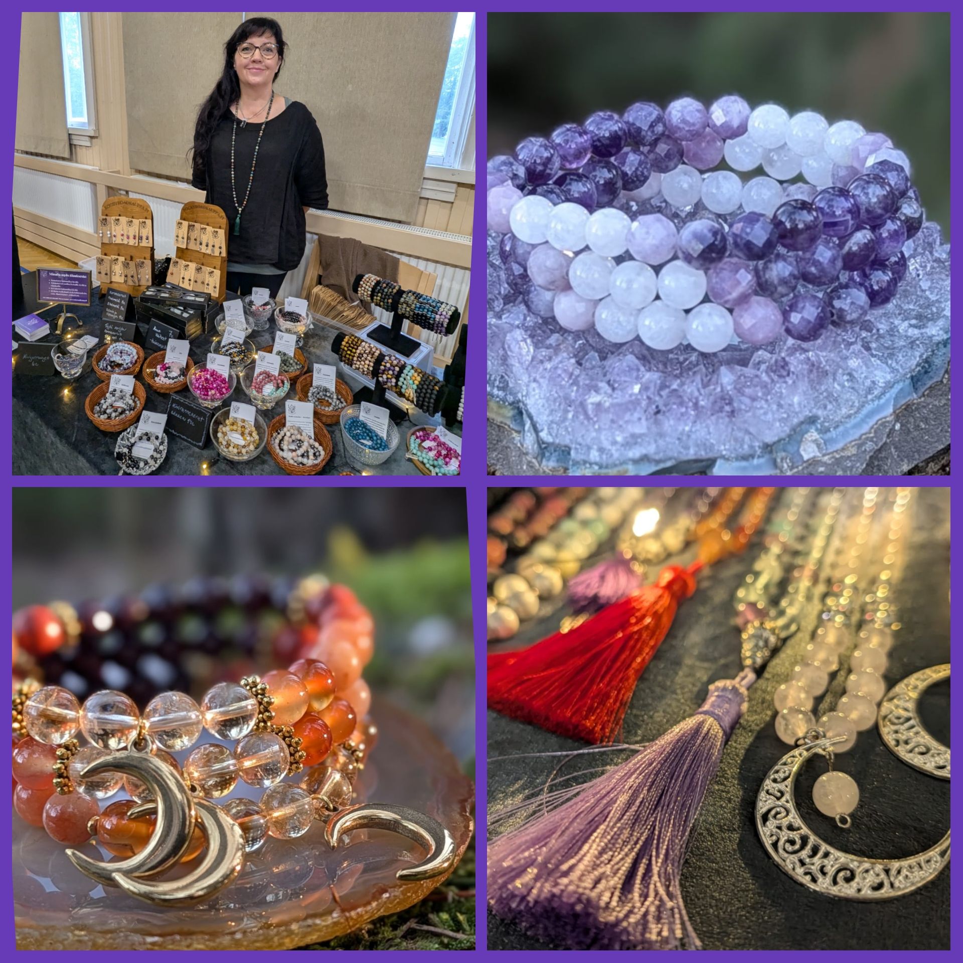 RockyRoad -kaupan yrittäjä ja korujen tekijä. Olen mukana hyvinvointimessuilla ja tuon tullessani kaikkea ihanaa sielun ja mielen ravinnoksi. RockyRoad -kauppa on intohimoni, ja valmistan kaikki korut itse käsin, suurella sydämellä. Korujen lisäksi myyntipöydältäni löytyy valikoima kaikkea muutakin maagista: Erilaisia kiviä Tuoksuvia suitsukkeita ja öljyjä